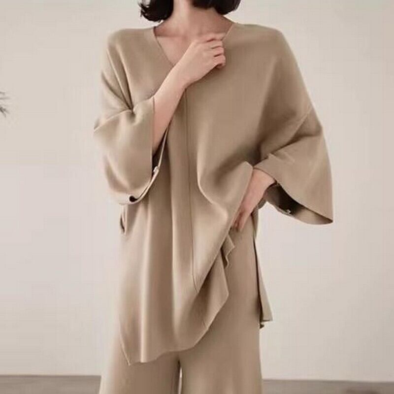 Knit sweater wide leg pants 2color set-up